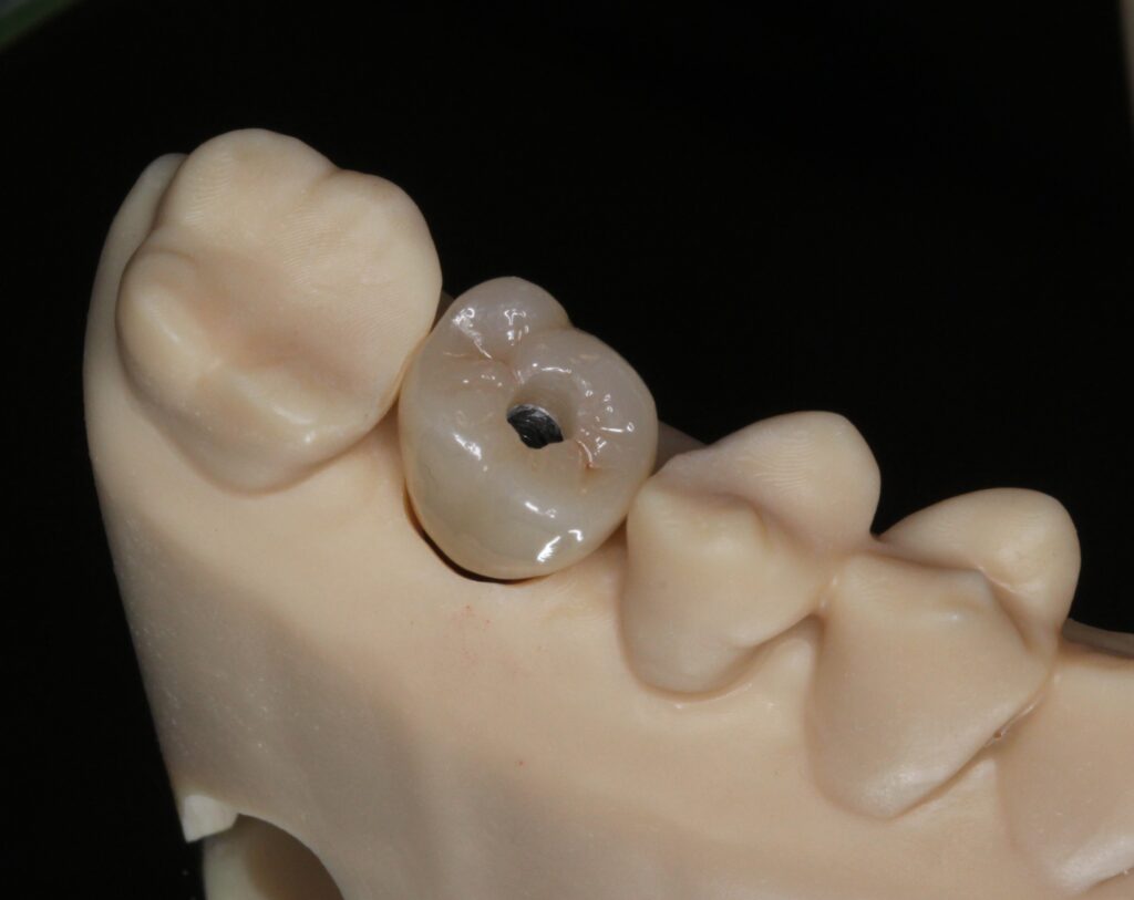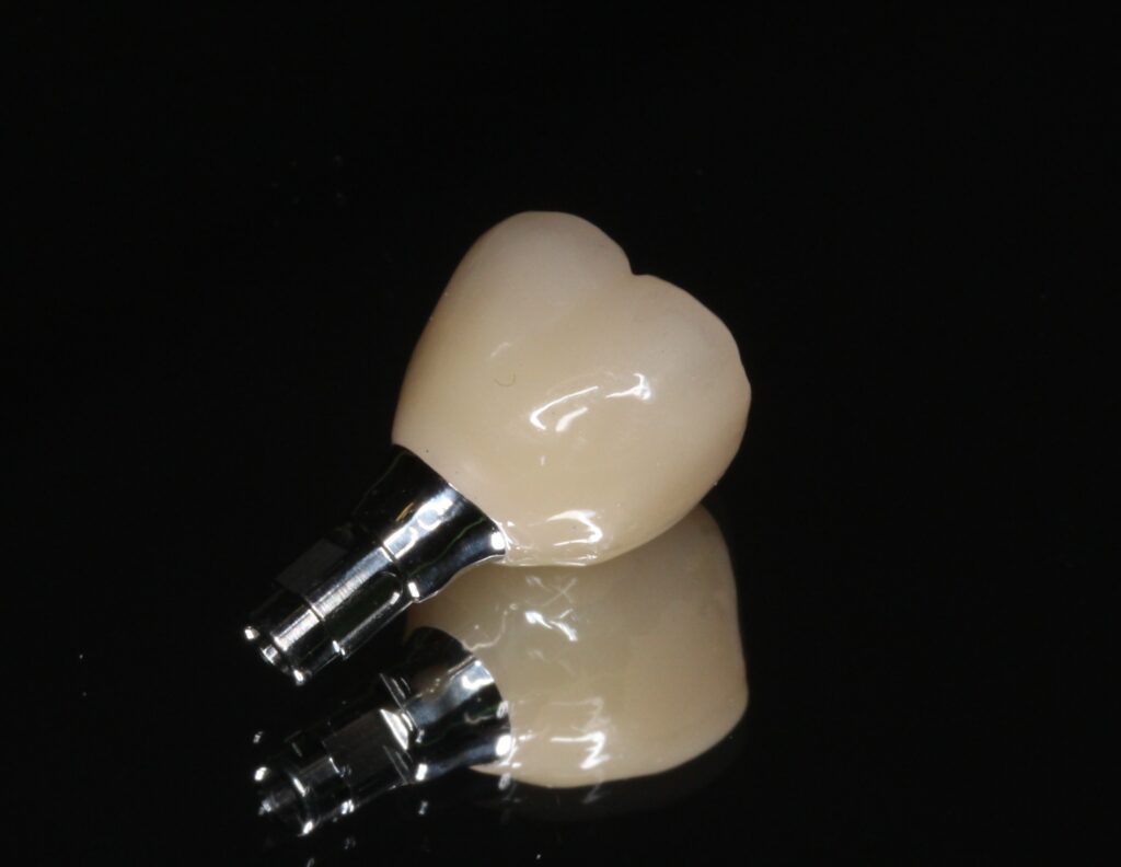 写真の画像では少し浮いておりますが、口腔内では、スクリューで締め付けるため、上部構造は歯肉に密着いたします。