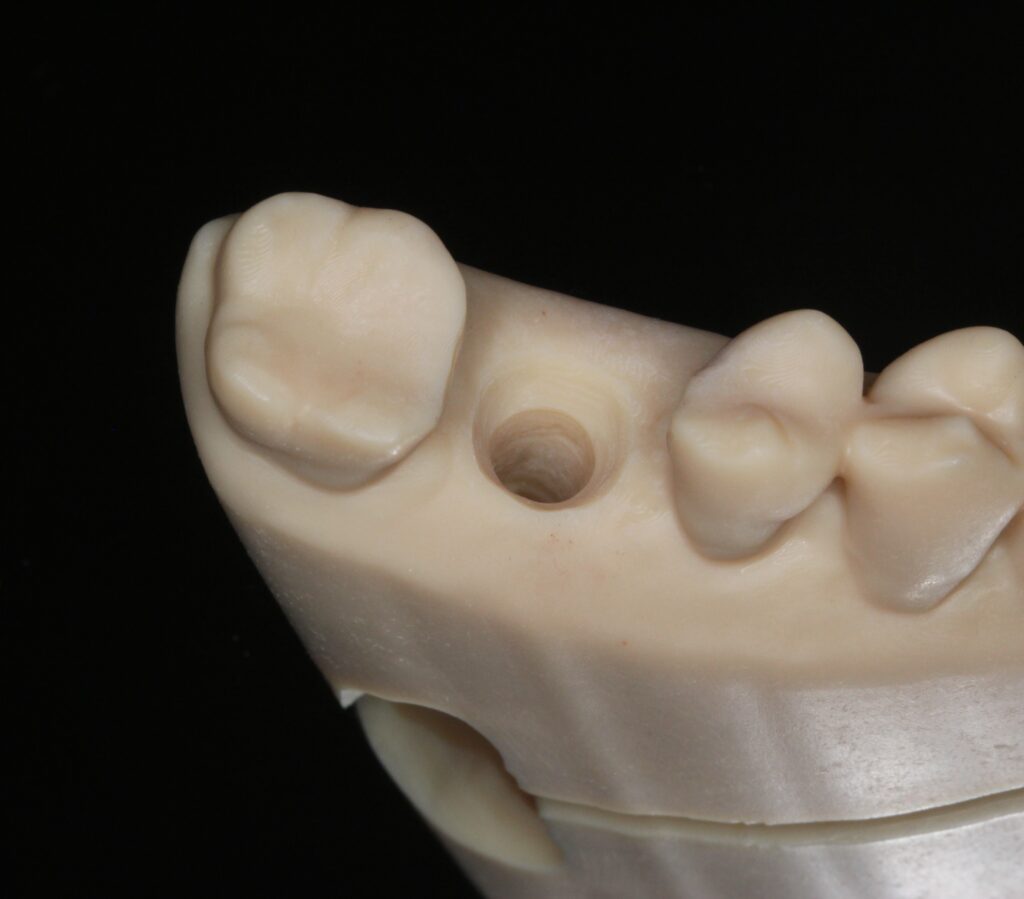 スキャンデータよりミリングマシンにて口腔内模型を削り出し製作します。従来の石膏模型は使用しません。